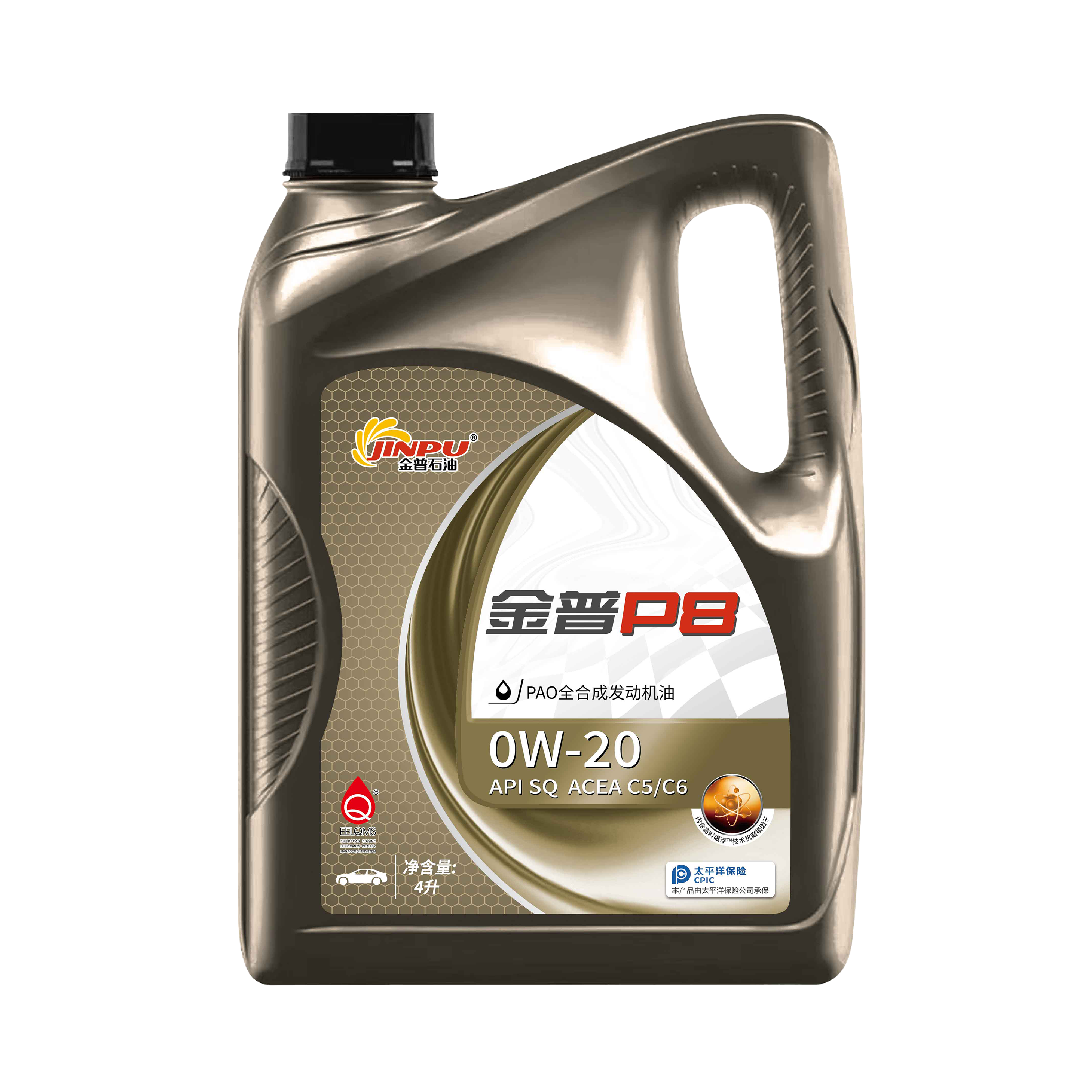 Poly Alpha Olefin(PAO)+全合成基础油金普P8 PAO全合成发动机油采用优秀PAO+全合成基础油和雅富顿添加剂并加入高科磁浮技术抗磨损因子配方调和而成,具有卓越的低温流动性及更高的抗氧化性,专为城市驾驶复杂多变路况设计,全天候保护新升级。低硫、低磷、低硫酸盐灰分科技配方,有效保护尾气后处理装置。卓越的油泥控制和低速早燃控制及燃油经济性。适用车型